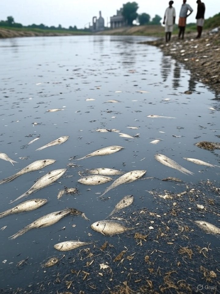 हसदेव नदी, छत्तीसगढ़ का जीवन स्रोत, औद्योगिक प्रदूषण की चपेट में है। स्थानीय रिपोर्ट्स और चित्रों से पता चलता है कि एक सीमेंट संयंत्र के पास नदी का पानी धूसर हो रहा है, मछलियां मर रही हैं, और राख के अवशेष तैर रहे हैं। समुदाय ने 100 से अधिक शिकायतें दर्ज कीं, लेकिन जवाब नहीं मिला। क्या मुनाफा पानी से ज्यादा कीमती है?