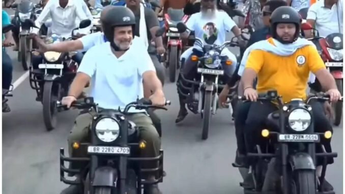 Rahul Gandhi and Tejashwi Yadav rode motorbikes during their “Vote Adhikaar Yatra” in Bihar, aiming to address concerns about voter roll irregularities. The Yatra, spanning over 1,300 kilometres, seeks to mobilize people against alleged manipulation in the electoral roll revision process, which the opposition claims targets poor, minorities, and migrant workers, leading to vote theft.  Read More